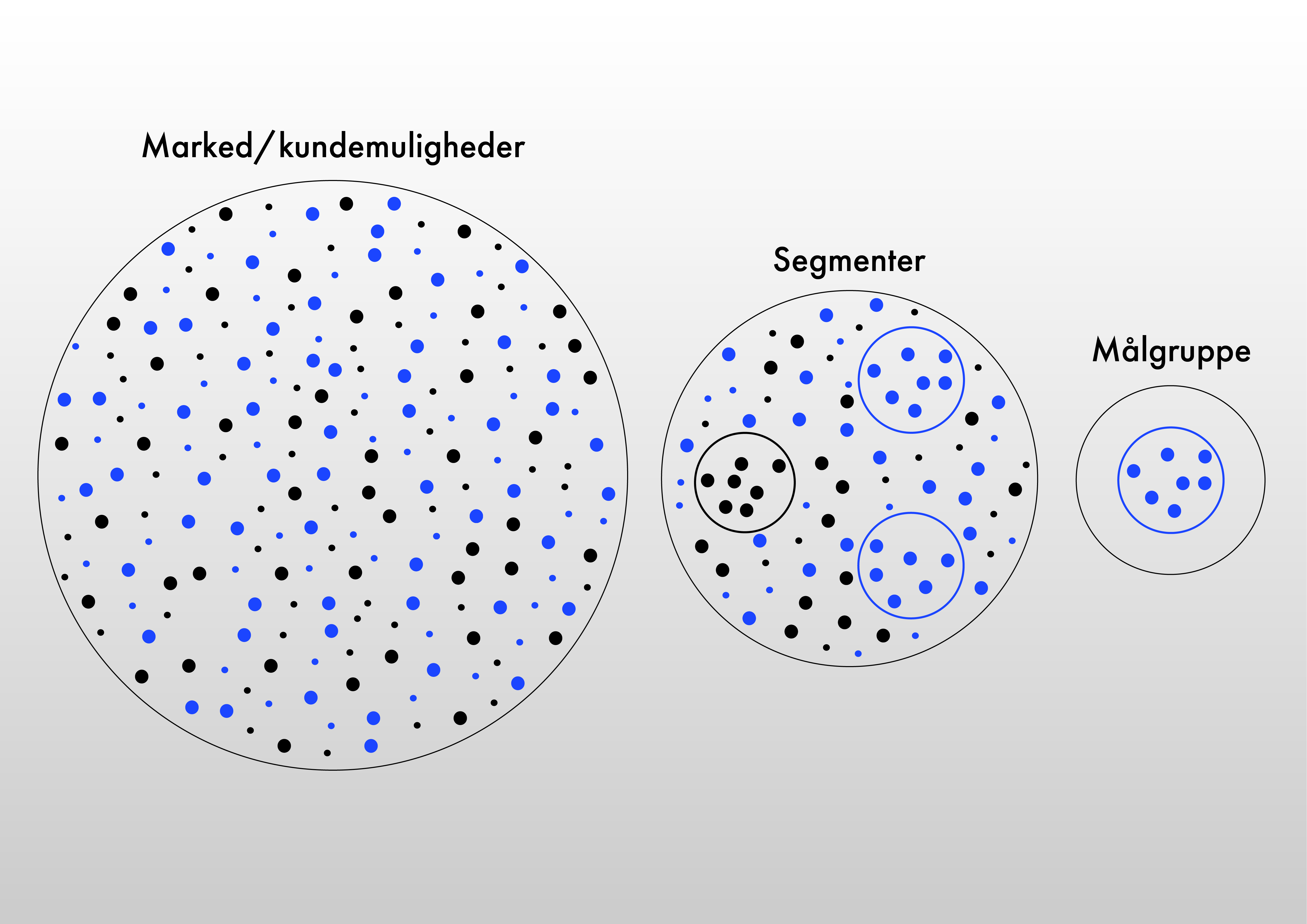 For at finde den målgruppe, man ønsker at ramme, kan man segmentere markedet. Det betyder at hvis vi kigger på Danmark, så kan vi inddele befolkningen i ensartede grupper, også kaldet segmenter. Disse segmenter er grupperet efter køn, alder, økonomi, osv., og de gør det mere overskueligt at finde den målgruppe, man ønsker at ramme.